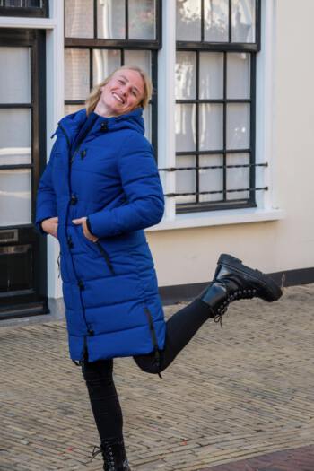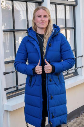Nooit meer een koude of natte winter door deze lange winterjas van Coazy Coatz voor dames. De gewatteerde jas is getailleerd, wat een slanke en vrouwelijke look geeft. Tegelijkertijd is dit model ook sportief en speels door de windvanger met de kenmerkende knopen. De naden zijn getaped, waardoor regenbuien geen kans maken.