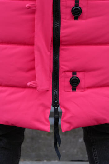 De winterjas heeft sterke ritsen en is gemaakt van hoogwaardig kwalitatief materiaal.